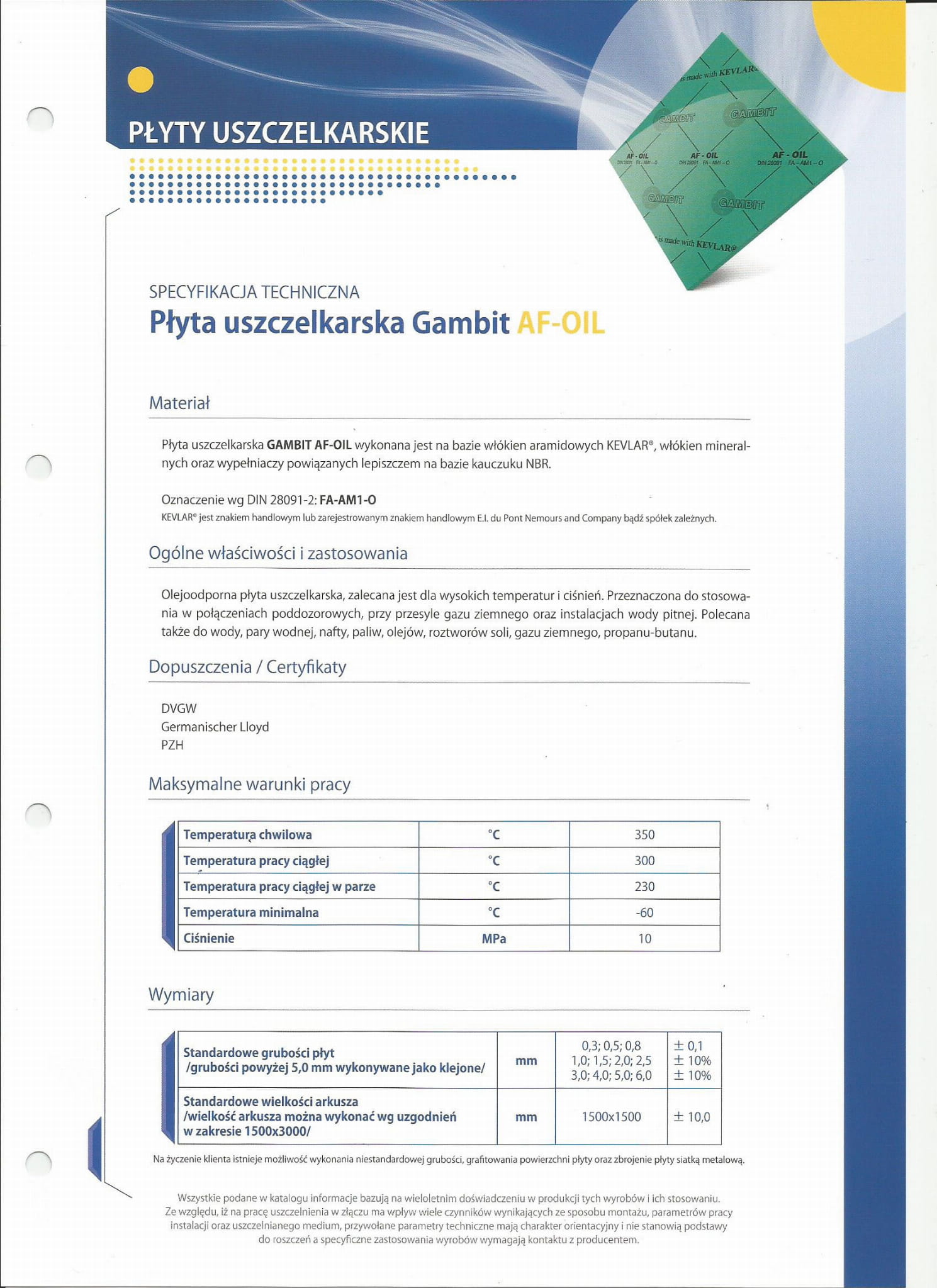 Olejoodporna płyta uszczelkarska , zalecana jest dla wysokich temperatur i ciśnień